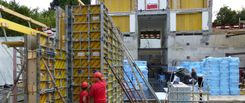 Die bestehende Villa wurde mit aller Vorsicht bis auf das Strassenniveau unterfangen und zusammen mit der Baugrube für die neue Tiefgarage unter- und abgegraben. Die Baugrubensicherung erfolgte etappenweise mit Ortbetonelementen und Stahlträgeraussteifungen.