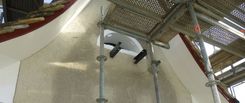 Das bestehende Transformatorenhäuschen soll als Zeitzeuge in der Art und im Aussehen erhalten bleiben. Der vorhandene Besenwurf wurde, wo notwendig, repariert und ausgebessert. Einige alte Eisenteile ausgespitzt und zugeputzt. Anschliessend wurde die ganze Putzoberfläche mit einer Sumpfkalkschlämme zweimal im Kreuzschlag gestrichen.